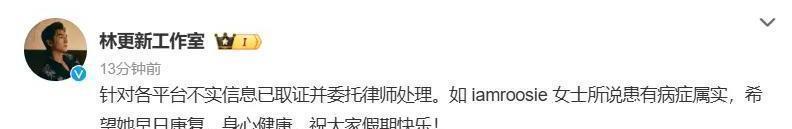 到𱄽日上午,王安宇工作室的声明更坚定,要求全社会抵制谣言,强调任何参与捏造、传播这种信息的人,都得负法律责任。同一天,林更新工作室也发了文,表示已经委托律师处理相关不实信息,希望大家过个太平假期。不过,对爆料者心态还是挺温柔,希望她早点健康。